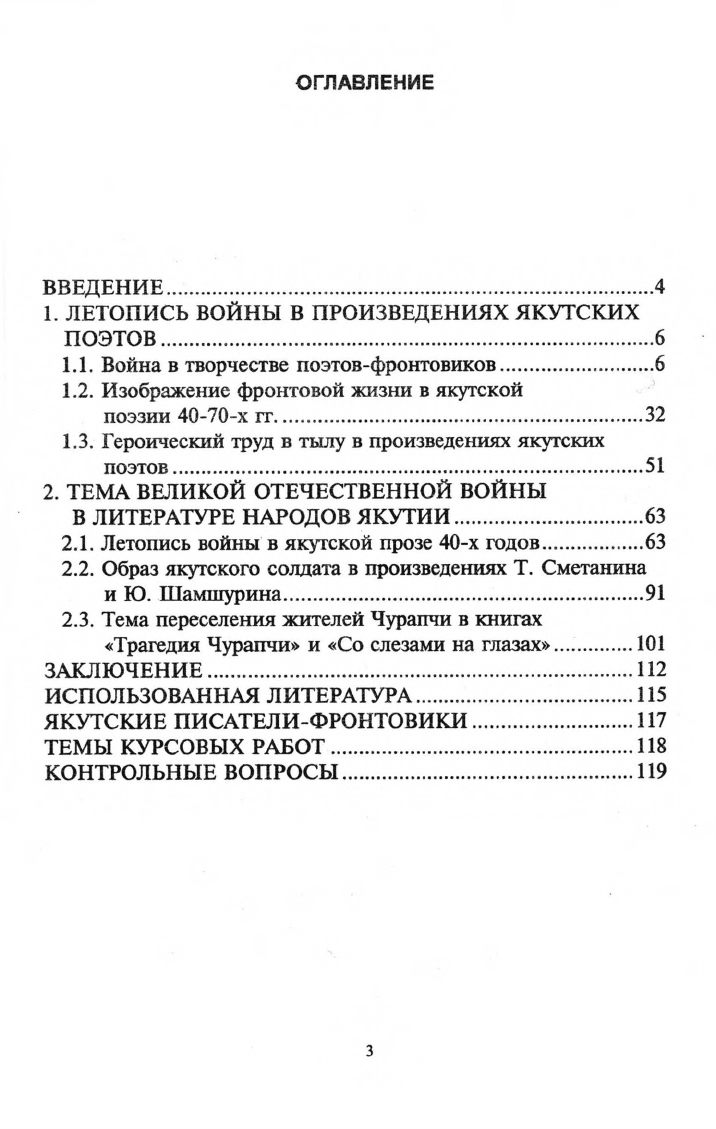 В учебном пособии автор осмысливает, как в литературе народов Якутии изображаются масштабы пережитой трагедии, истоки, причины, значение Победы, добытой советским народом в сражениях и в тылу в годы Великой Отечественной войны. В соответствии с концепцией целостности литературного процесса автор анализирует творчество не только крупных, но и неизвестных широкому кругу читателей писателей 40-х гг. XX столетия: М. Тимофеева-Терешкина, А. Пестюхина-Ольхона, К. Платоновой, А. Неустроевой, А. Винокурова-Олбинского. Пособие предназначено для литературоведов, студентов, преподавателей средних и высших учебных заведений, для всех, кто интересуется проблемами развития литератур народов Якутии