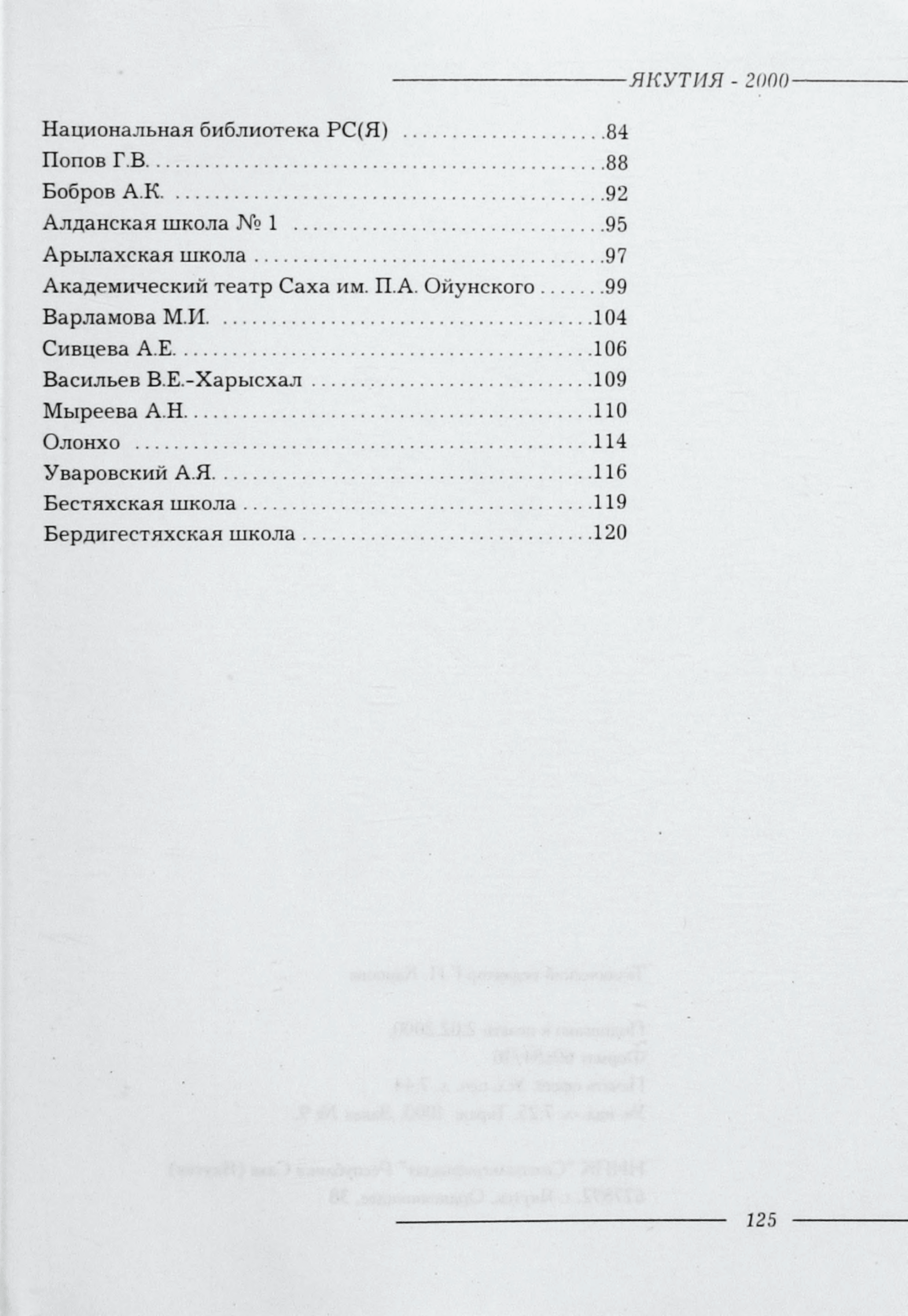 Якутия-2000 : календарь знаменательных и памятных дат / Национальная библиотека Республики Саха (Якутия). Отдел национальной и краеведческой литературы ; [составитель Н. А. Ханды ; научный консультант Е. Е. Алексеев]. - Якутск : Сахаполиграфиздат, 2000. - 125, [1] с.