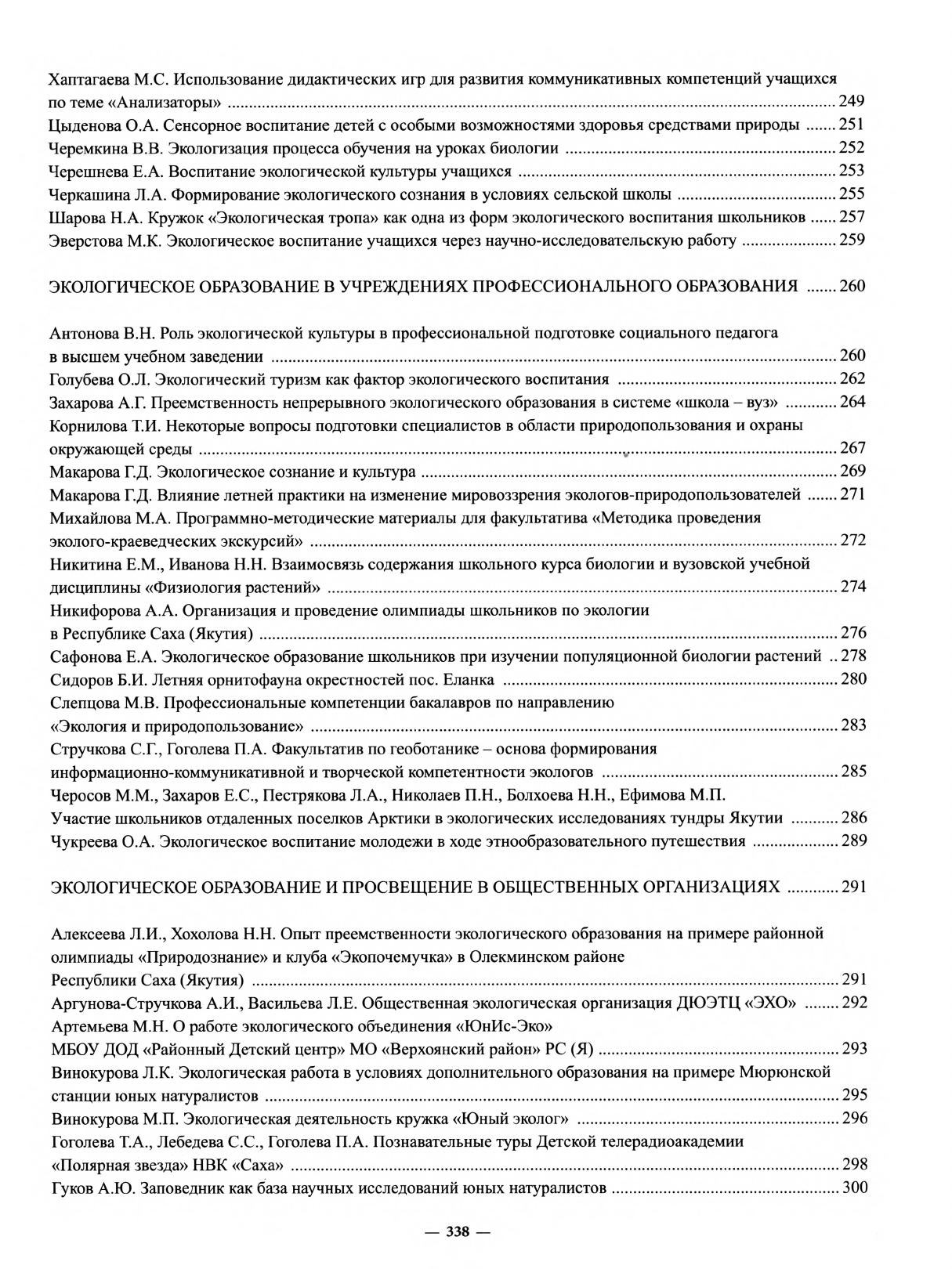 Региональная система экологического образования и просвещения в интересах устойчивого развития: материалы IV республиканской научно-практической конференции "Непрерывное экологическое образование для населения Республики Саха (Якутия)", 22 марта 2013 г. / [редкол.: О. М. Кривошапкина д.п.н., проф., П. А. Гоголева, к.б.н., А. Г. Захарова, к.п.н. и др.]. - Якутск : Компания "Дани Алмас", 2013. - 339 с.