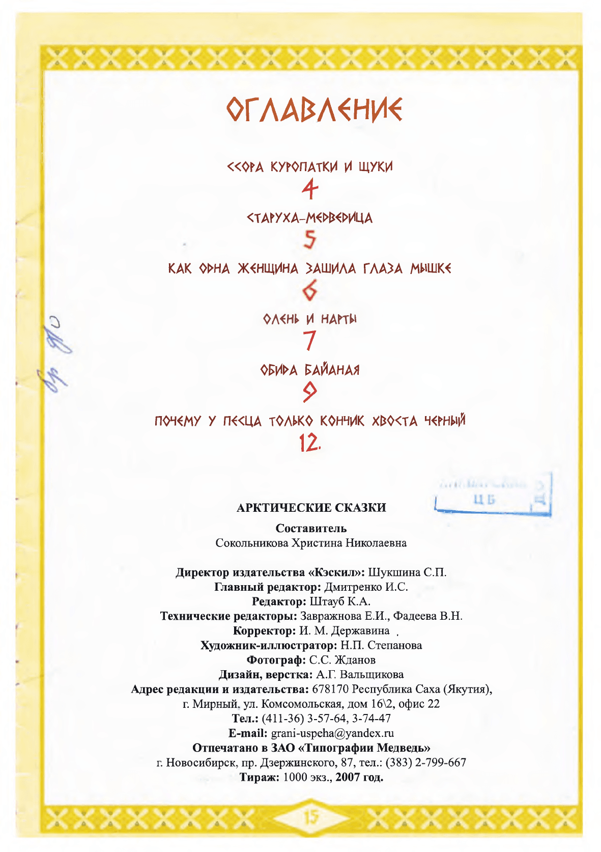 Арктические сказки / сост. Х. Н. Сокольникова. - Мирный : Кэскил, 2007. - 15 с.