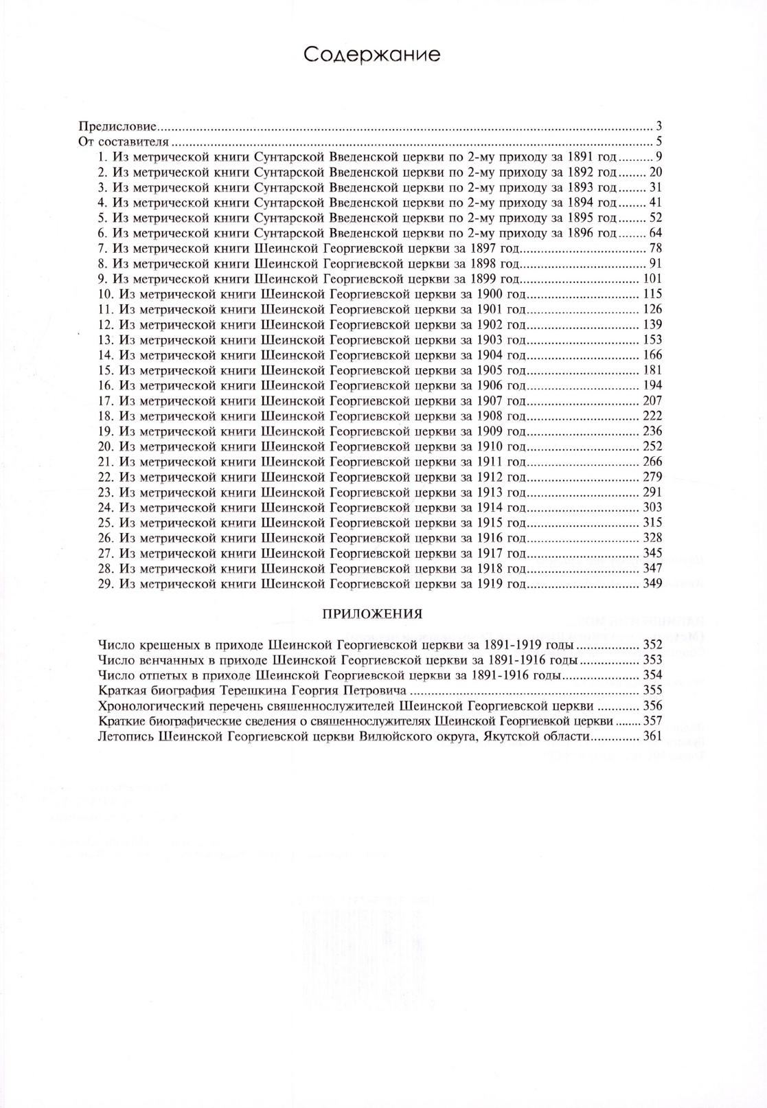В сборнике впервые опубликованы метрические книги Шеинской Георгиевской церкви за 1891-1919 гг. из фондов Национального архива Республики Саха (Якутия)