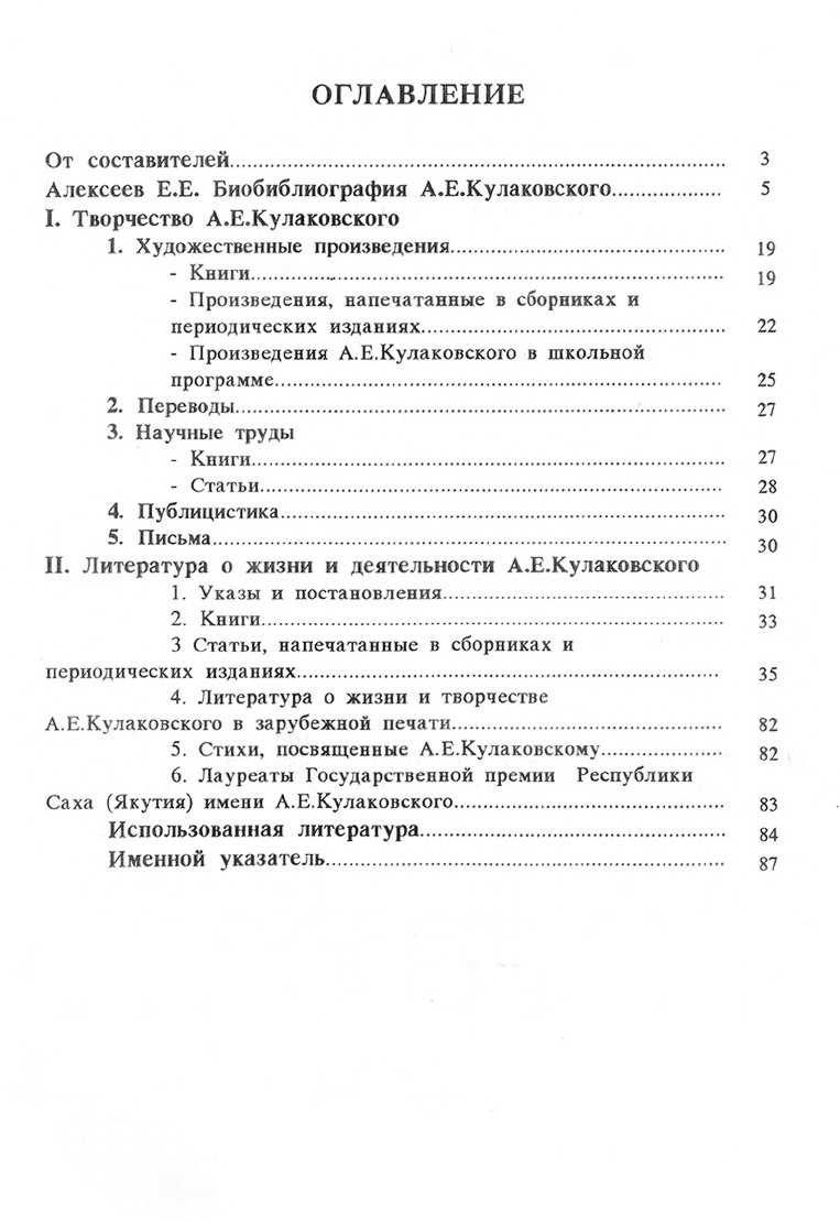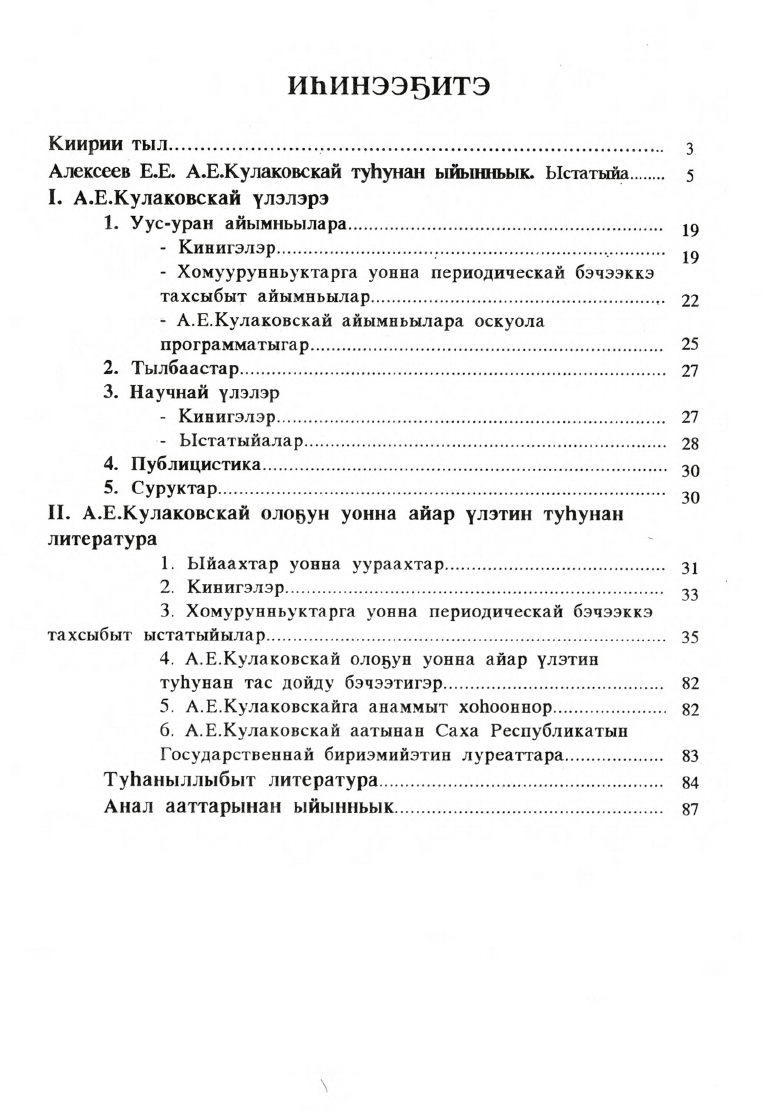 Алексей Елисеевич Кулаковский (Өксөкүлээх Өлөксөй) (1877-1926) : (биобиблиографический указатель) / Нац. б-ка Респ. Саха (Якутия), Лит. фонд РС(Я) им. А. Е. Кулаковского ; [сост.: В. Н. Павлова, Я. А. Захарова, Л. Р. Кулаковская ; консультант М. Г. Самыгина ; науч. консультант Е. Е. Алексеев]. - Якутск : НБ РС(Я), 1997. - 93, [3] с.