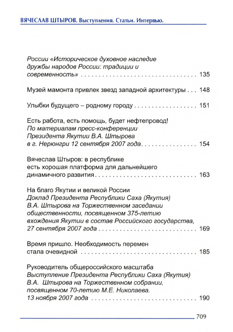 Книга представляет собой сборник статей, выступлений и интервью за период 2007-2010 гг. Президента Республики Саха (Якутия) В. А. Штырова. Материалы книги дают объемное представление о характере общественно-политических и социально-экономических проблем и путях их решения в Республике Саха (Якутия) во второй половине первого десятилетия XXI века - плодотворном времени поступательного и динамического развития Якутии во всех сферах жизни