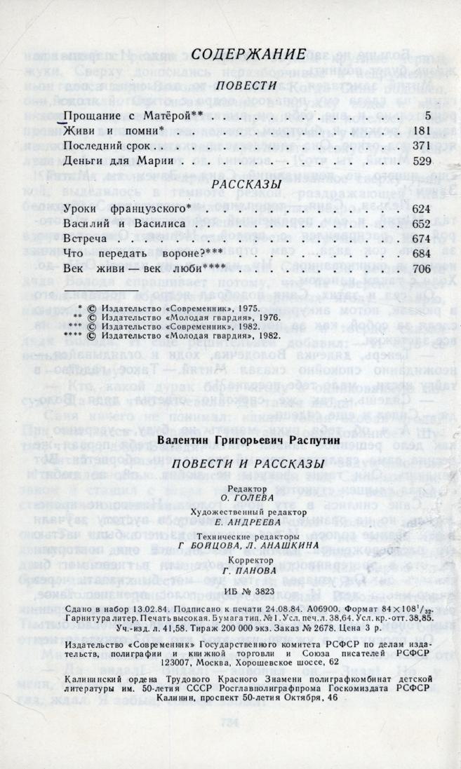 Повести и рассказы / В. Распутин. - Москва : Современник, 1984. - 734, [2] с.