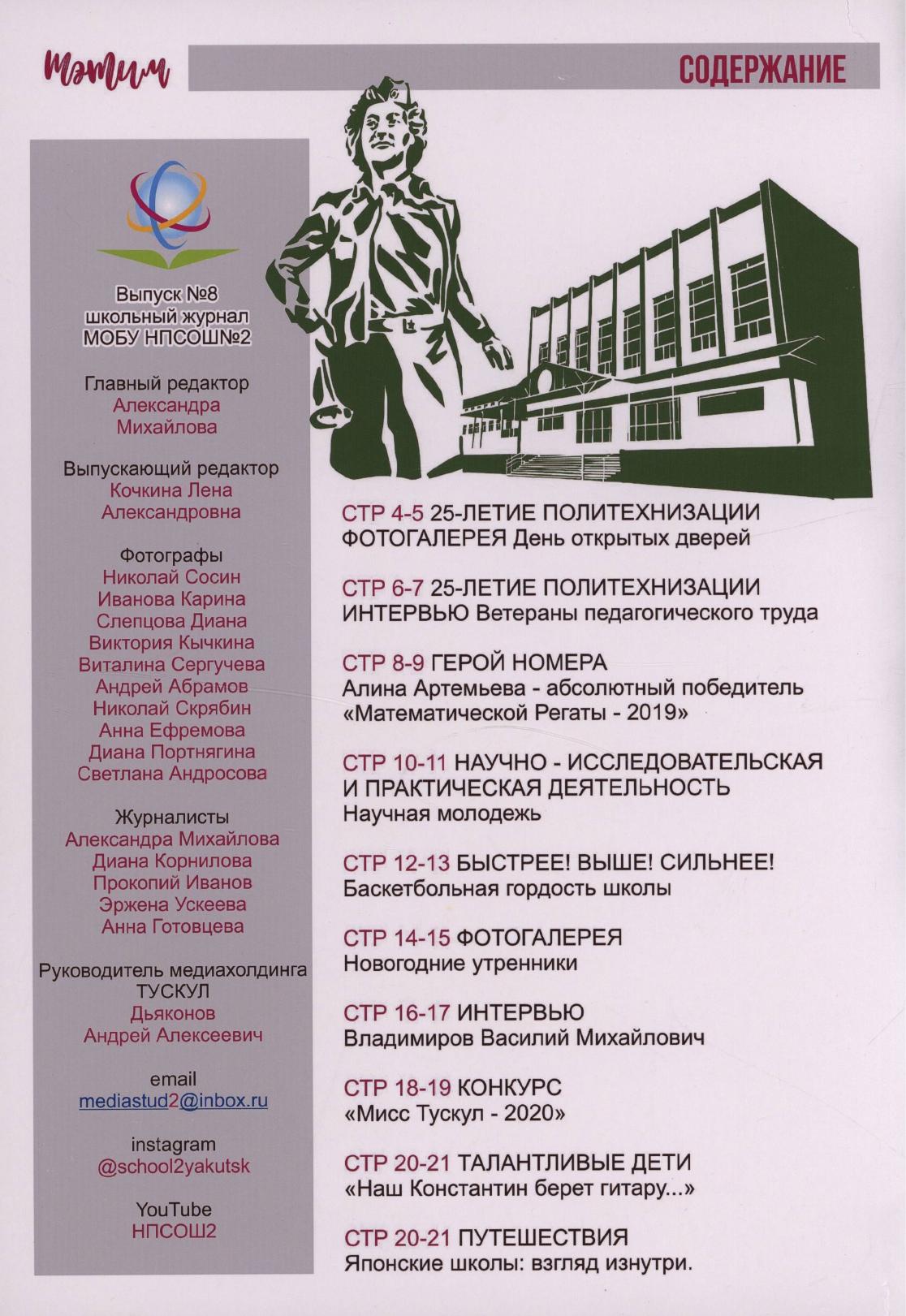 Тэтим : школьный журнал МОБУ НПСОШ N 2 / главный редактор Е. И. Николаева. - [Якутск : НПСОШ N 2], 2018-    .