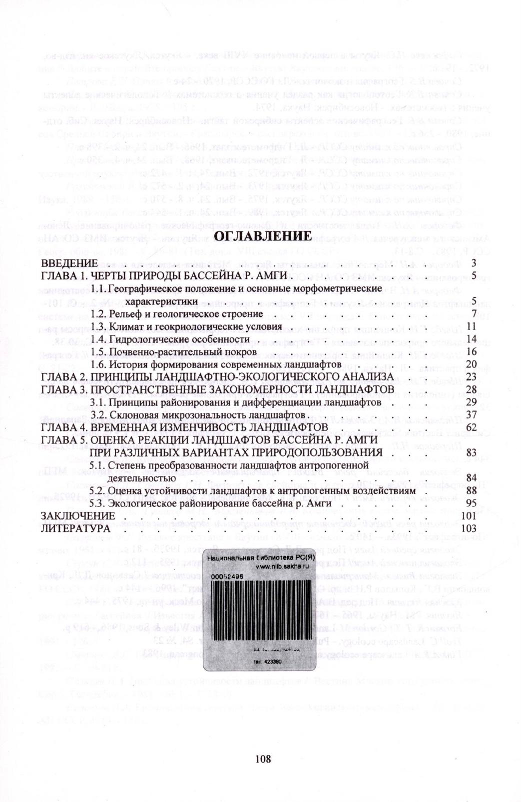 Ландшафтно-экологический анализ бассейна р. Амги / А. Н. Горохов, Д. Д. Саввинов, А. Н. Федоров ; ответственный редактор Ю. В. Шумилов ; рецензенты: Г. Н. Максимов, Г. Н. Саввинов ; Сибирское отделение РАН, Институт прикладной экологии Севера, Институт мерзлотоведения им. акад. П. И. Мельникова СО РАН. - Якутск : Издательство Института мерзлотоведения СО РАН, 2000. - 109 с.