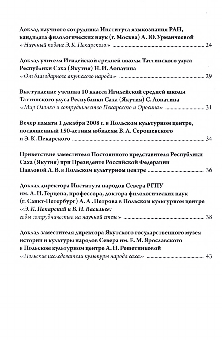 Сборник докладов и выступлений на презентации третьего издания словаря якутского языка Э. К. Пекарского и юбилейного мероприятия, посвященного 150-летним юбилеям Э. К. Пекарского и В. Л. Серошевского; Постоян. Представительство Респ. Саха (Якутия) при Президенте Рос. Федерации, Гос. учреждение г. Москвы "Москов. дом национальностей" ; [подбор материала и ред. Н. Н. Колодезникова]. - Москва: ГУ МДН, 2009. - 46, [2] с.