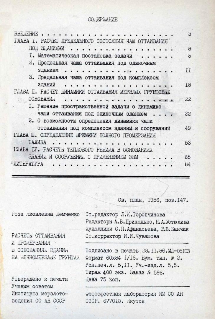 Расчеты оттаивания и промерзания в основаниях зданий на многолетнемерзлых грунтах / Р. Я. Демченко ; ответственный редактор: Т. Балобаев ; Академия наук СССР, Сибирское отделение, Институт мерзлотоведения. - Якутск : ИМЗ СО АН СССР, 1986. - 88, [1] с.