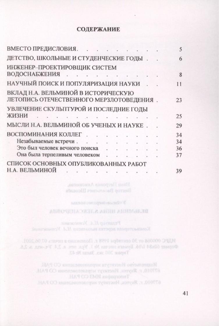 Вельмина Нина Александровна / Н. П. Анисимова, В. В. Шепелев ; ответственный редактор Р. М. Каменский ; Российская академия наук, Сибирское отделение, Институт мерзлотоведения им. академика П. И. Мельникова. - Якутск : Изд-во ИМ СО РАН, 2001. - 41 с. : ил., портр.