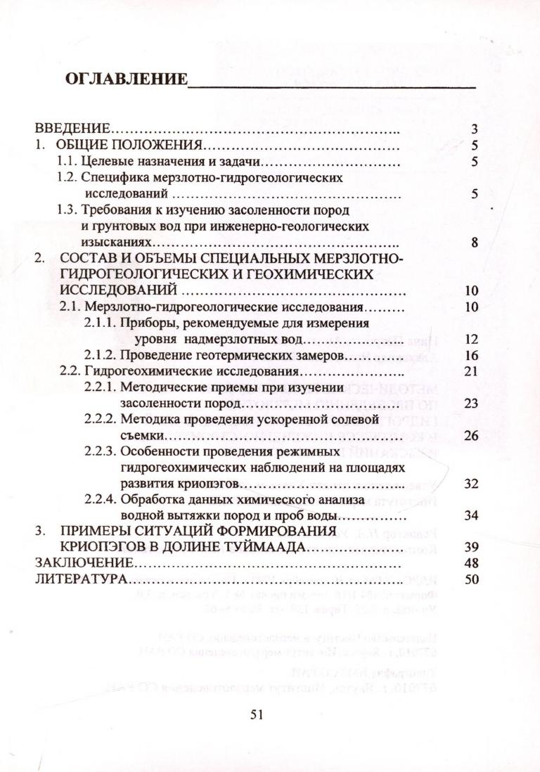 В работе, на основании большого опыта проведения поисковых мерзлотно-гидрогеологических исследований и режимных наблюдений,приводятся методические рекомендации по специфике получения качественной исходной информации, необходимой для составления мерзлотно-гидрогеохимических прогнозов изменения геологической среды при освоении техногенно нарушенных территорий Центральной Якутии, а также для разработки мероприятий по недопущению формирования высокой засоленности грунтов и криопэгов. В рекомендациях рассматриваются возможные при проведении исследований ошибки, предлагаются новые методические подходы с применением гидрогеохимического экспресс-метода, приводятся характерные примеры ситуаций формирования техногенных криопэгов в долине Туймаада. Предлагаемые методические рекомендации, в качестве временного издания, рассчитаны на инженерно-технических работников проектных, научно-исследовательских и строительных организаций