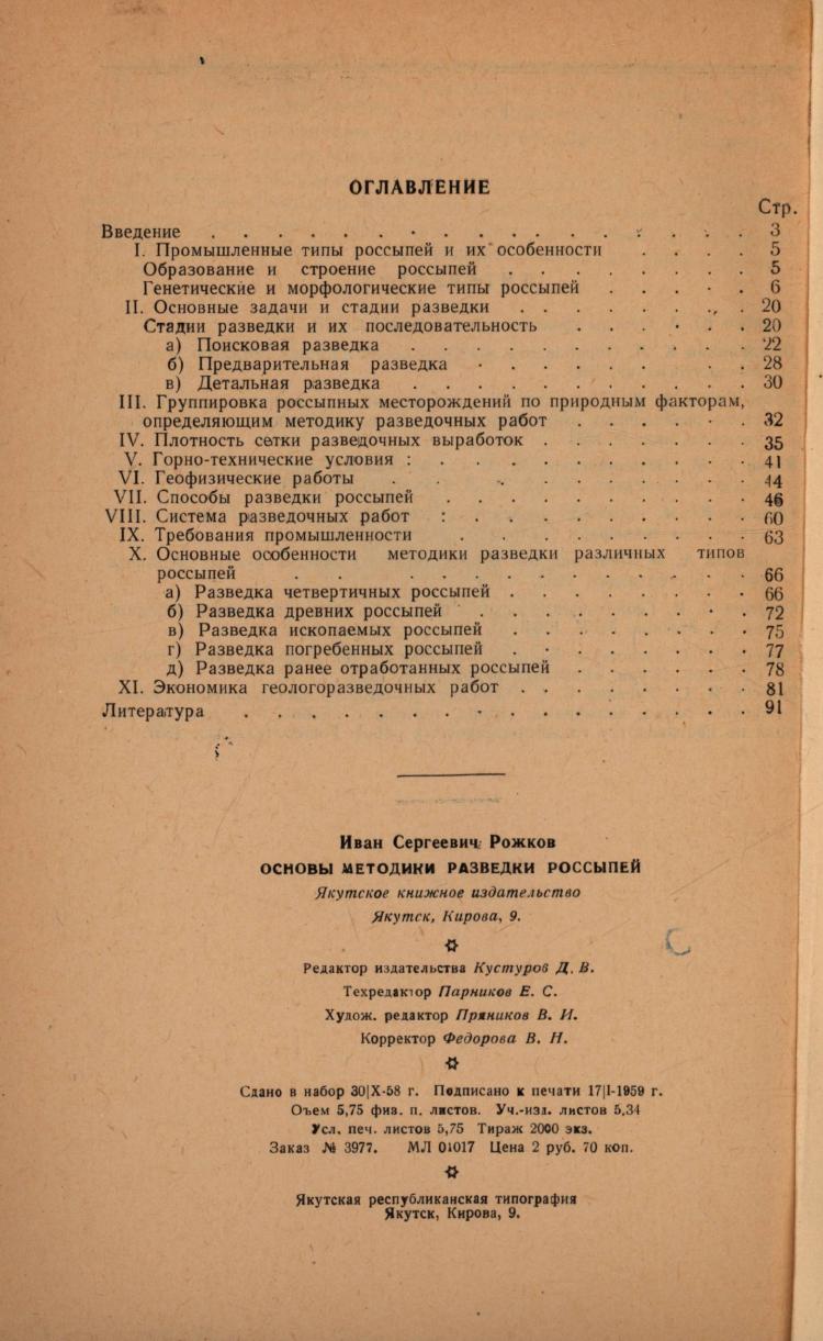 Основы методики разведки россыпей / И. С. Рожков. - Якутск : Якутское книжное издательство, 1959. - 89, [3] с.