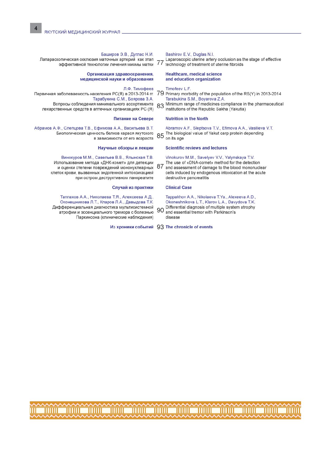 Якутский медицинский журнал / научно-практический журнал Якутского научного центра Российской Академии медицинских наук и Правительства Республики Саха (Якутия) ; главный редактор А. Н. Романова. – 2003 - . – Якутск : Сахаполиграфиздат, 2003 - . – Выходит 4 раза в год. – ISSN 1813-1905 (print). – ISSN 2312 (online). – 2016, N 2 (54)