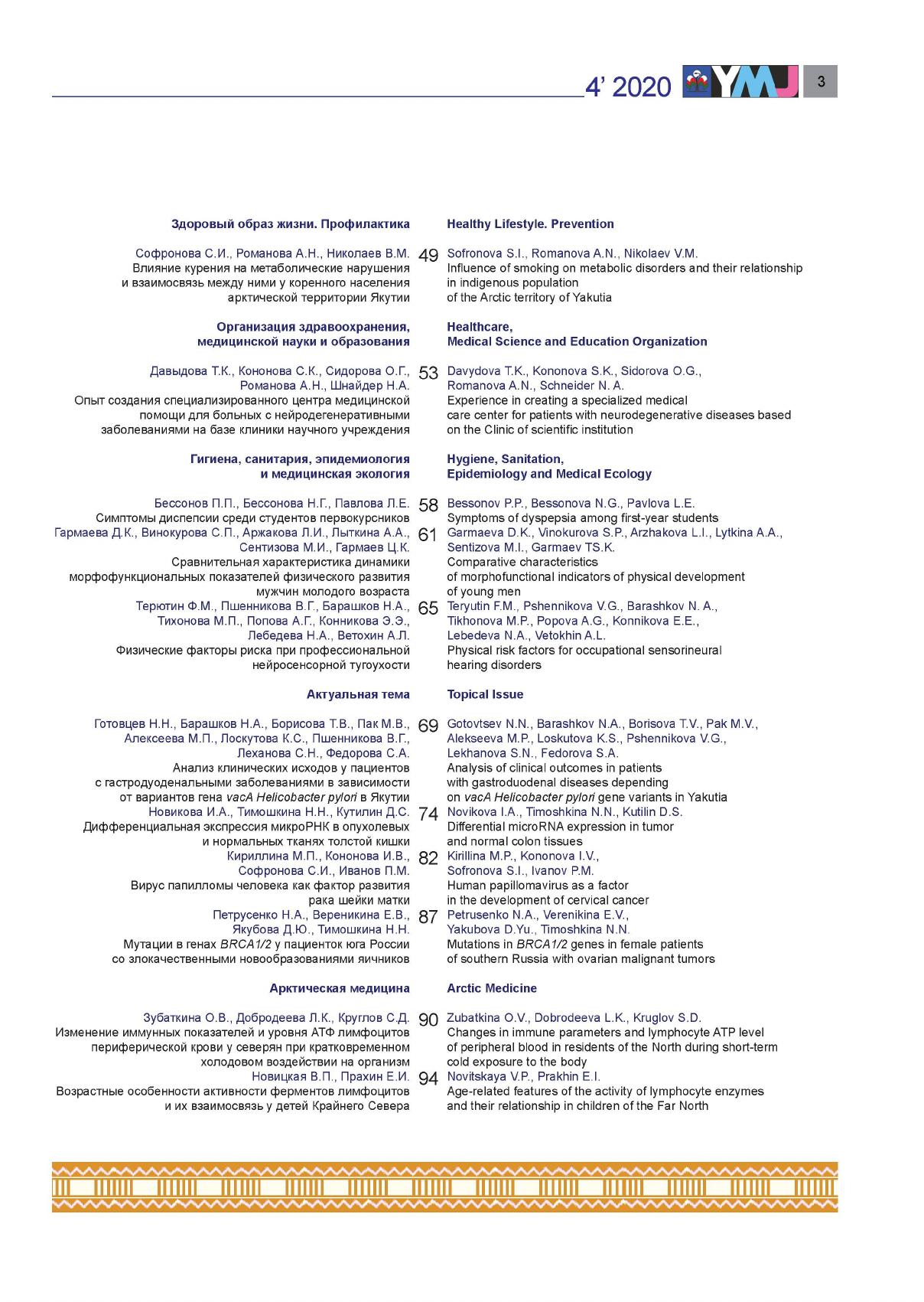- Периодические издания Якутии (конец XIX – XXI вв.) > Журналы > Якутский медицинский журнал > 2020,