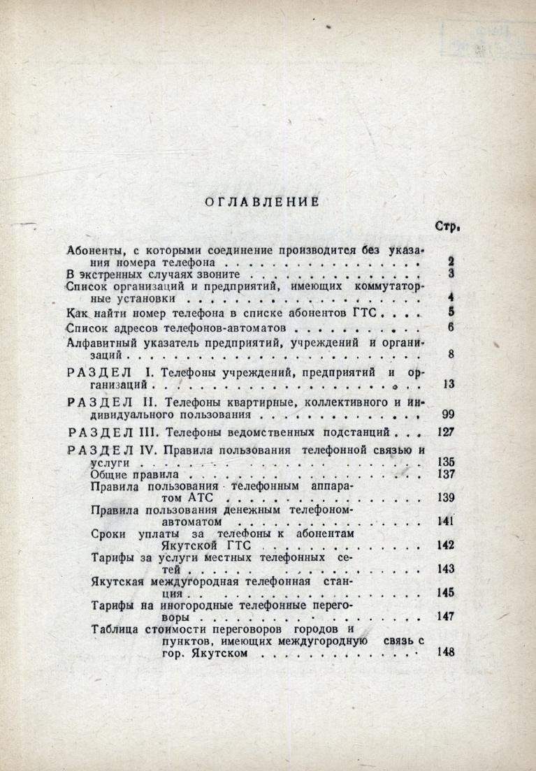 Список абонентов Якутской городской телефонной сети / Министерство связи СССР. - Якутск : Якутское книжное издательство, 1961. - 149 с.