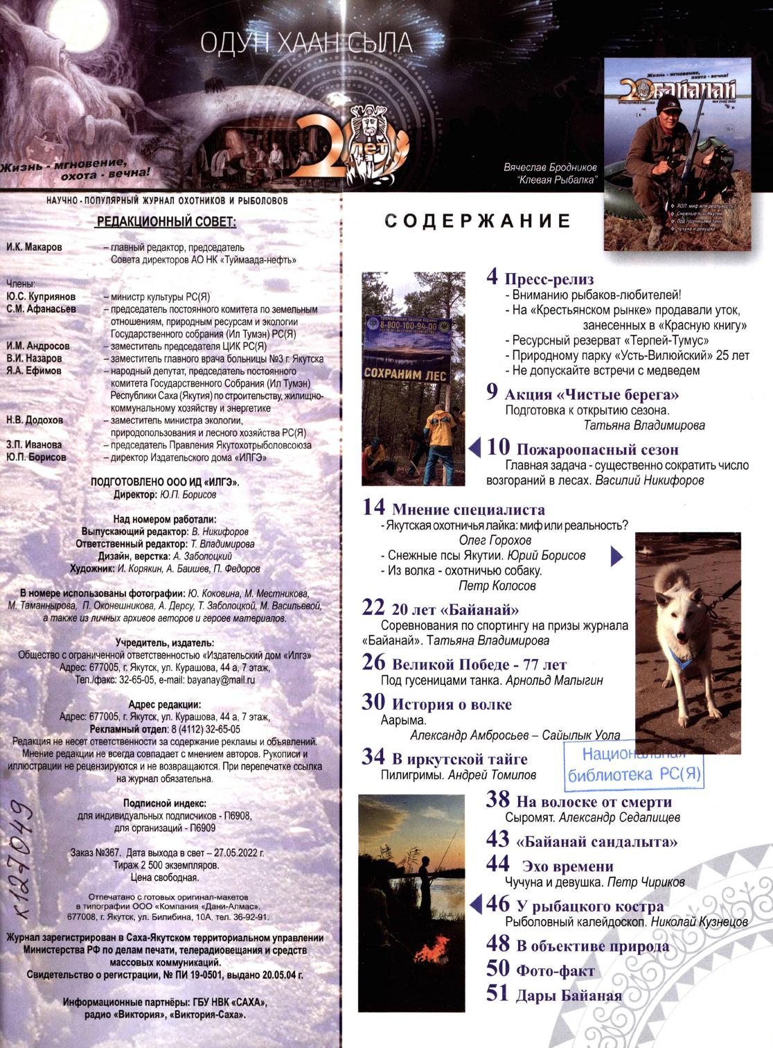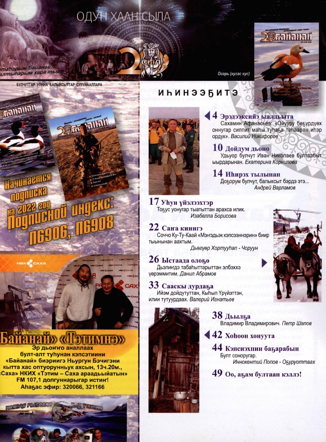 Байанай : научно-популярный журнал охотников и рыболовов. булчуттар уонна балыксыттар сурунааллара / главный редактор И. Макаров. - : ООО ИД "ИЛГЭ", .