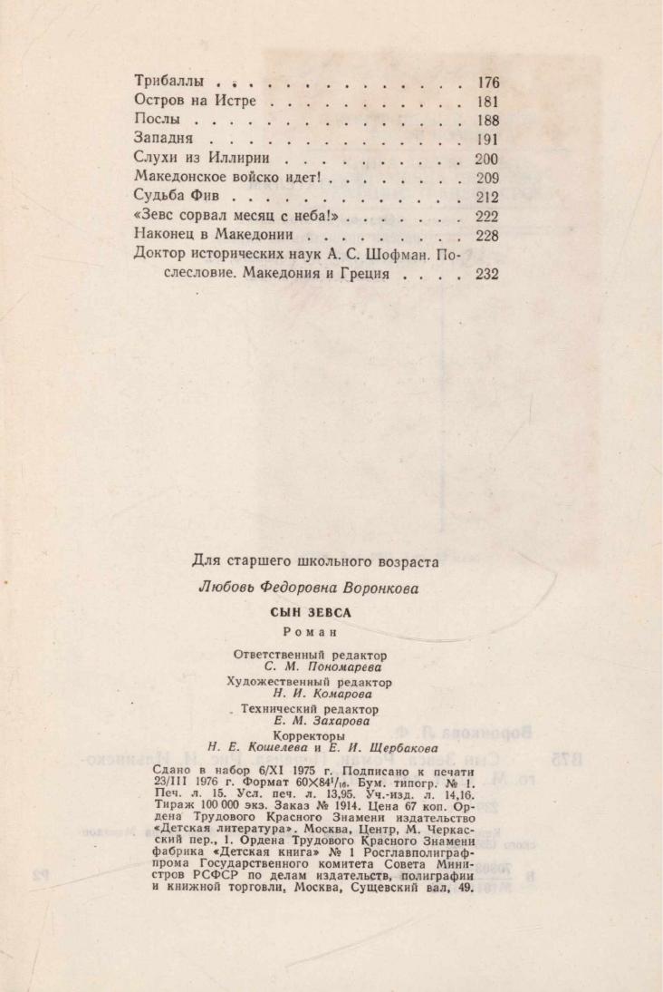 Сын Зевса : роман : [для старшего школьного возраста] / Л. Воронкова ; [послесловие А. С. Шофмана ; рисунки И. Ильинского]. - 2-е изд. - Москва : Детская литература, 1976. - 236, [1] с.