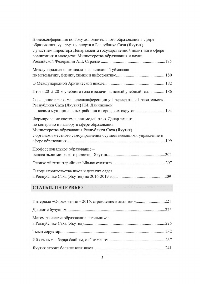 Сборник содержит доклады, выступления, статьи, интервью и другие материалы за 2016 год, отражающие деятельность Габышевой Ф. В. в области развития региональной системы образования республики