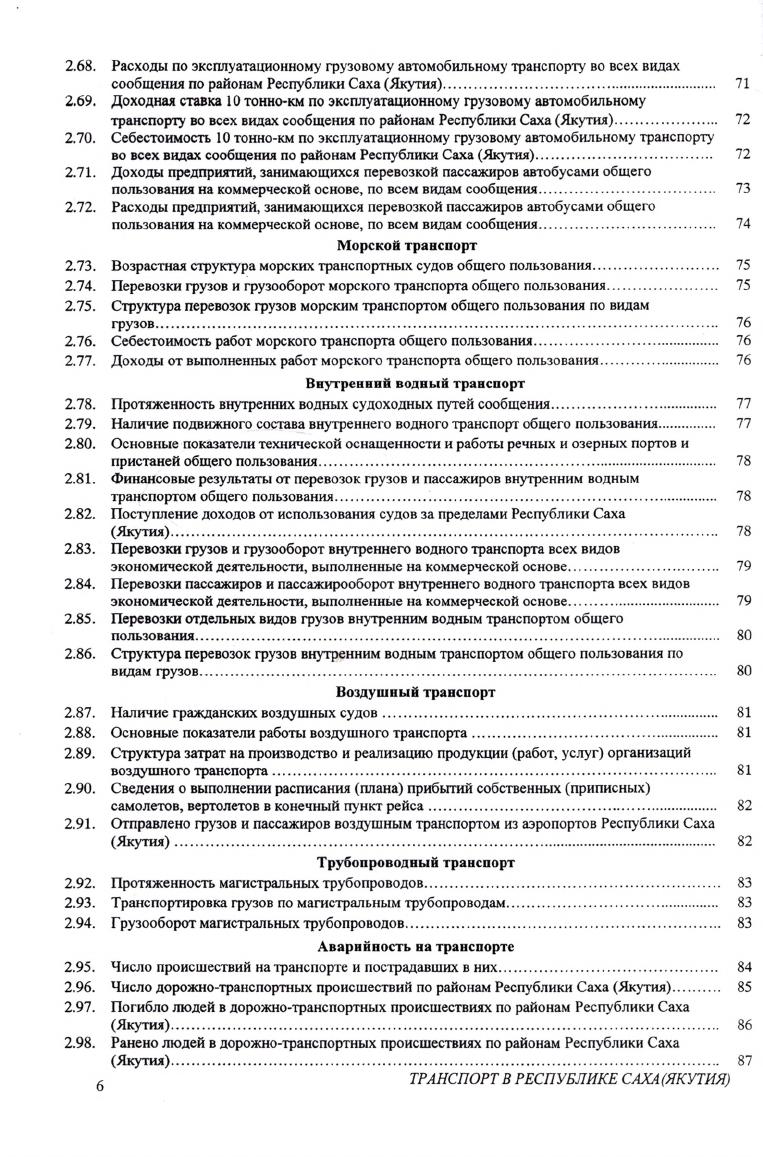 В статистическом сборнике публикуются статистические материалы, характеризующие состояние транспорта Республики Саха (Якутия) в динамике лет. Сборник подготовлен на основе данных федеральных государственных статистических наблюдений, отражающих деятельность предприятий и организаций автомобильного транспорта, дорожного хозяйства, Государственной инспекции безопасности дорожного движения министерства внутренних дел РС (Я). Помещены сведения об объемах перевозки грузов и пассажиров, инвестициях, трудовых ресурсах, наличии транспортных средств, финансах и тарифах. Отдельные показатели представлены в сравнении с показателями регионов Дальневосточного Федерального округа. Сборник предназначен для информирования руководителей местных органов исполнительной власти, финансово-экономических служб предприятий и организаций, научных, предпринимательских и банковских кругов, профессорско-преподавательского состава, аспирантов и студентов экономических вузов, других заинтересованных пользователей