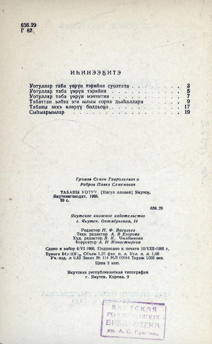 Табаны уотуу / С. Г. Громов, П. С. Ребров. - Якутскай : Якуткнигоиздат, 1966. - 20 с.