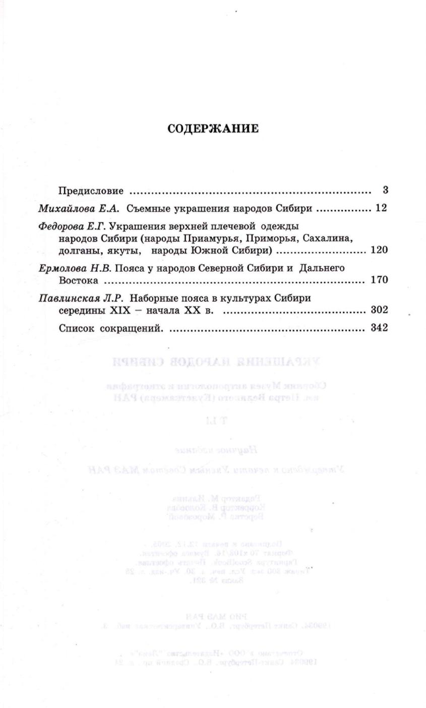 Украшения народов Сибири / Рос. акад. наук, Музей антропологии и этнографии им. Петра Великого (Кунтскамера) ; [ответственный редактор Л. Р. Павлинская]. - Санкт-Петербург : Кунсткамера, 2005. - 341, [2] с. - (Сборник Музея антропологии и этнографии / Российская академия наук, Музей антропологии и этнографии им. Петра Великого (Кунсткамера)