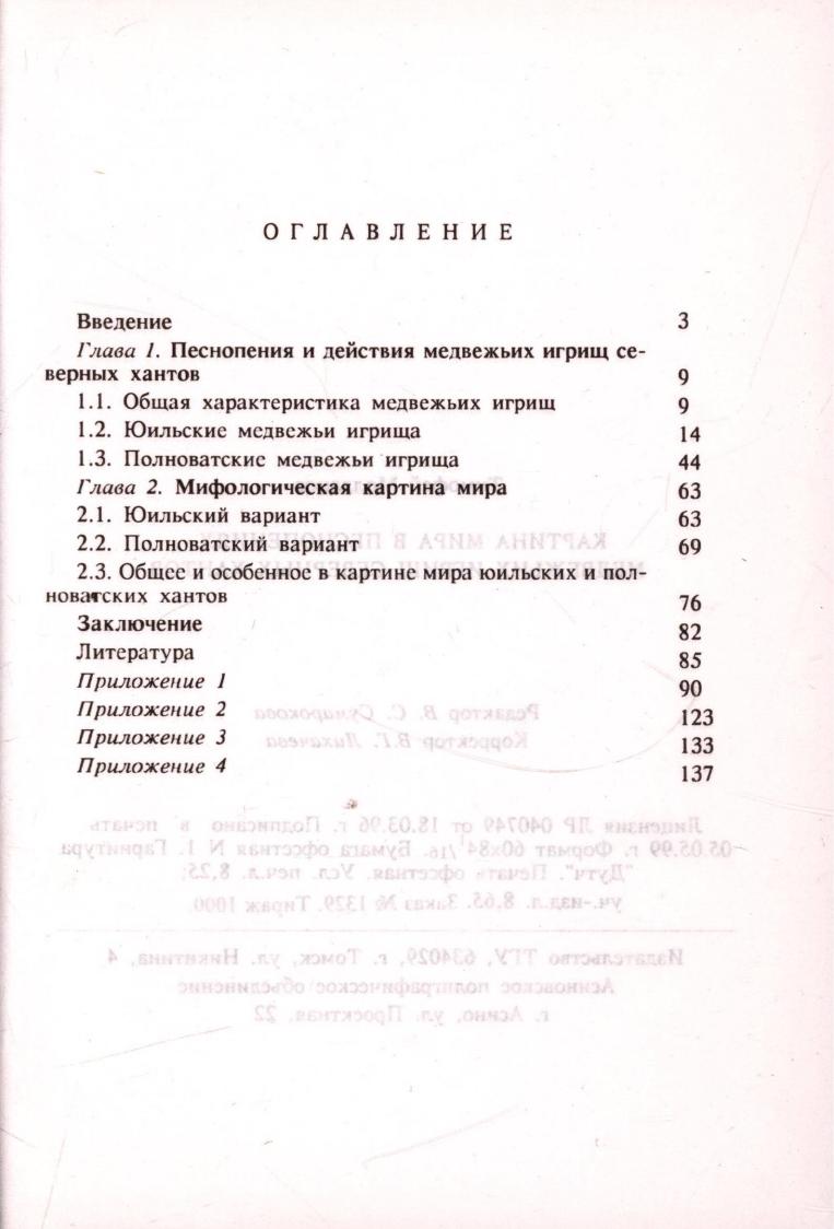 Картина мира в песнопениях медвежьих игрищ северных хантов / Тимофей Молданов ; Комитет по делам малочисленных народов Севера Администрации Ханты-Мансийского автономного округа, НИИ возрождения обско-угорских народов. - Томск : Издательство Томского университета, 1999. - 141 с., [4] л. цв. ил.