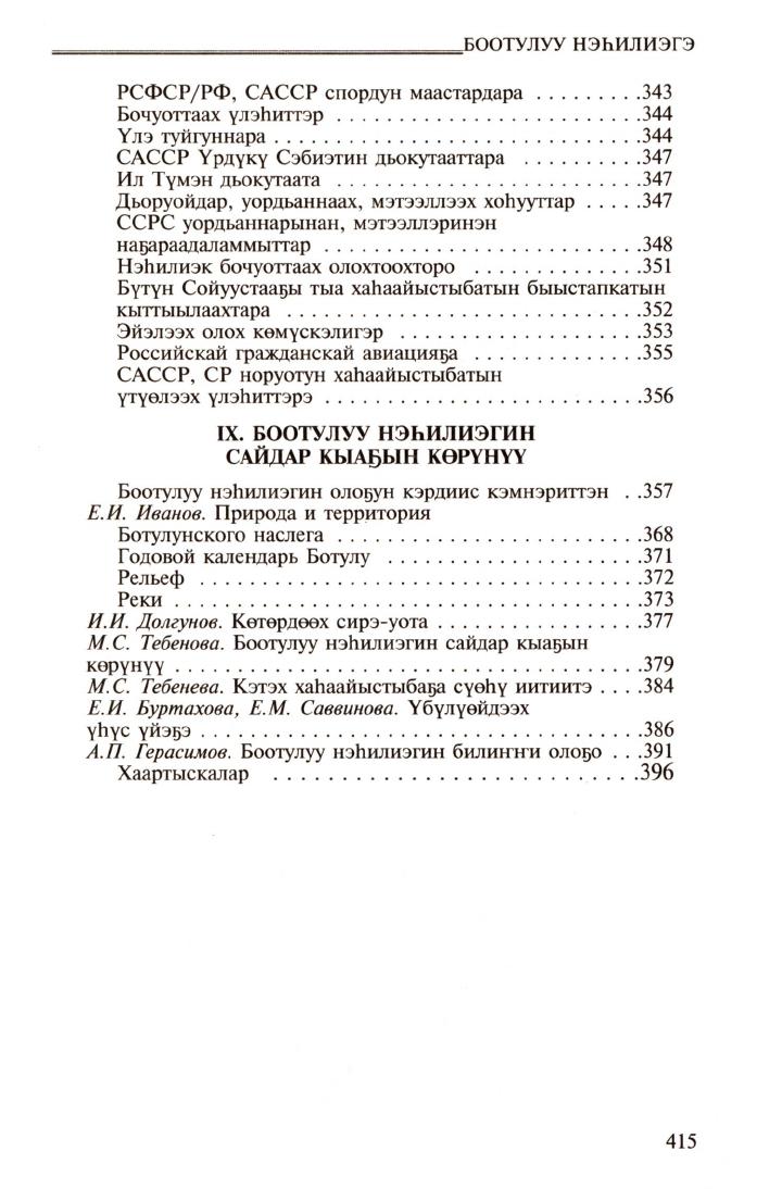 Боотулуу нэһилиэгэ / Саха Республиката "Үөһээ Бүлүү улууһа (оройуона)" муниципальнай тэриллии дьаһалтата ; [хомуйан оҥордулар: Г. А. Егорова, Е. И. Буртахова ; редактор М. С. Тебенова]. - Дьокуускай : Медиа-холдинг "Якутия", 2015. - 415 с.