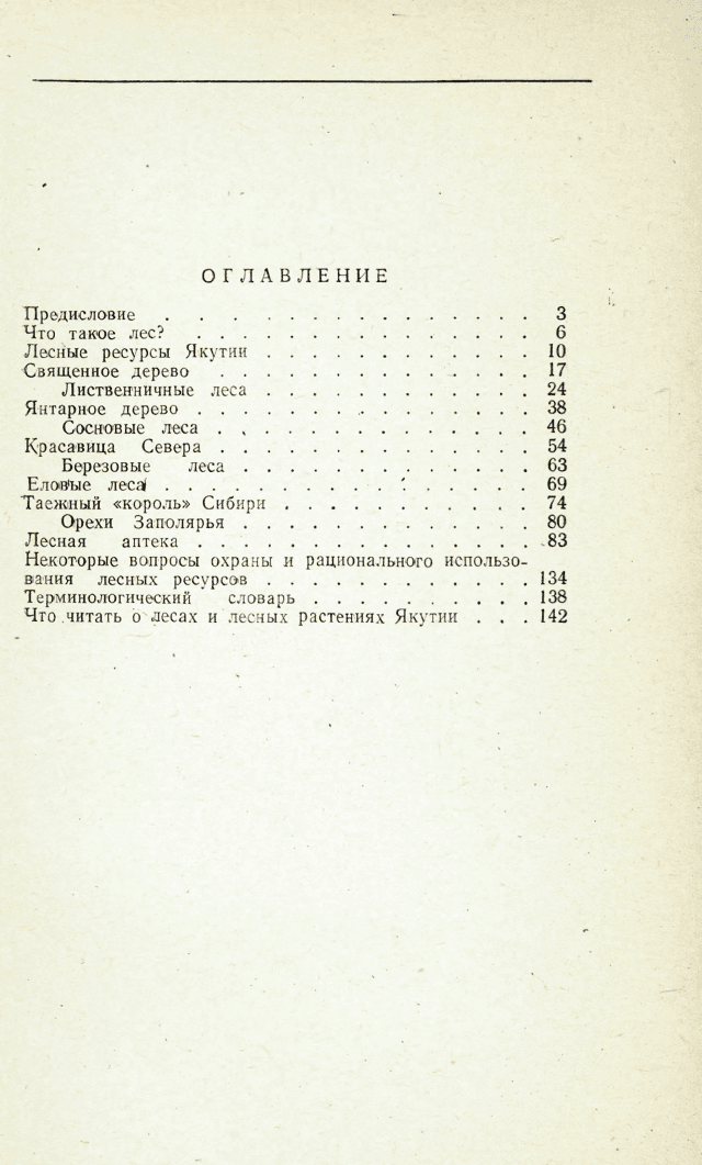 В книге дается понятие о лесе, как о природном комплексе живых организмов и среды; в популярной форме написано о главных древесных породах и лесных формациях, лекарственных растениях, произрастающих в лесах, о практическом использовании и охране естественных растительных ресурсов Якутской республики