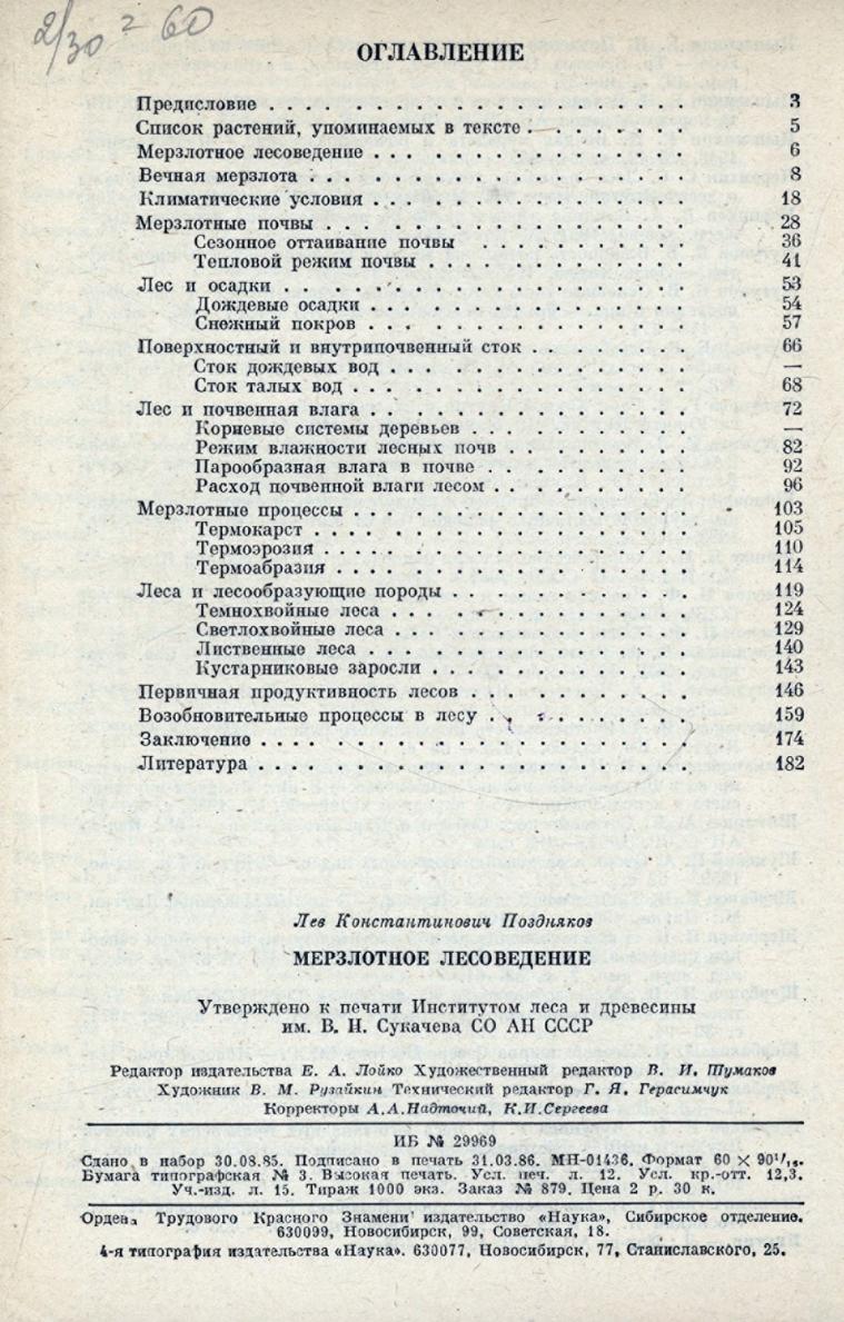 Мерзлотное лесоведение : [монография] / Л. К. Поздняков ; ответственный редактор Е. С. Петренко ; Академия наук СССР, Сибирское отделение, Институт леса и древесины им. В. Н. Сукачева. - Новосибирск [Наука], 1986. - 190, [1] с.