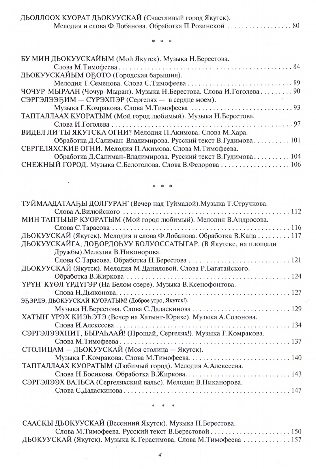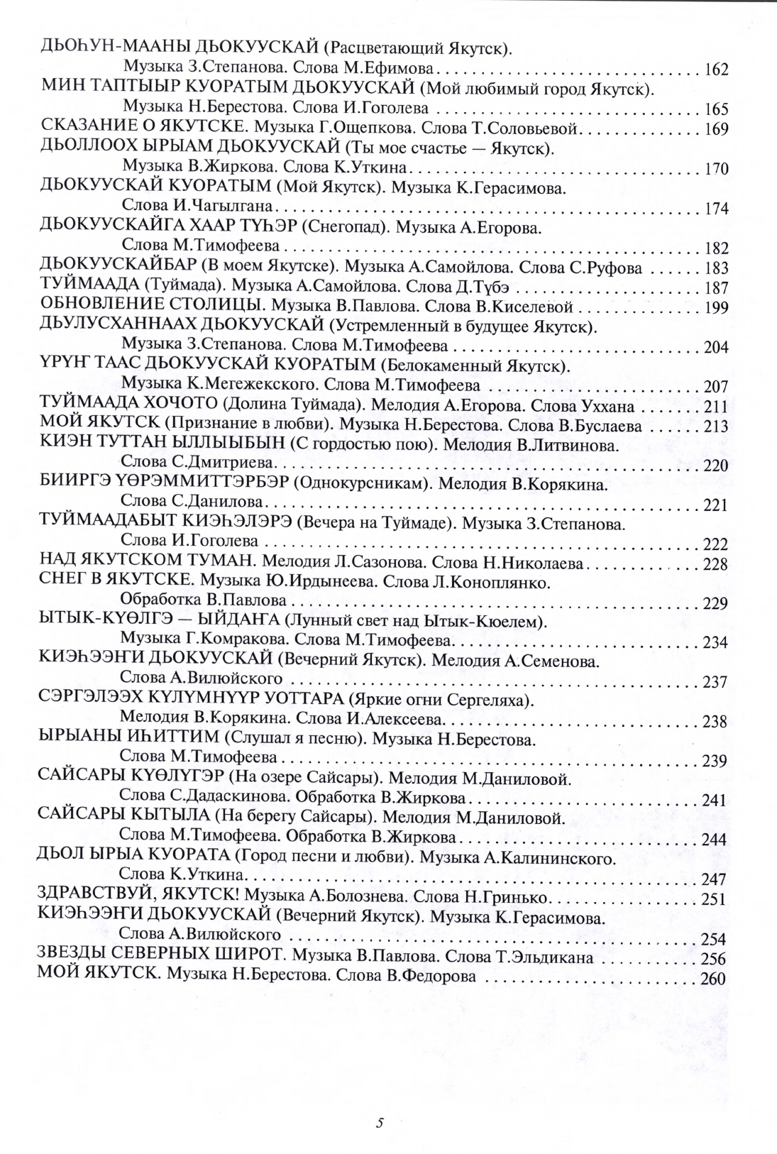 Туругура, тупса тур! = Расцветай, Якутск! : сборник песен о городе Якутске / Акад. Духовности Респ. Саха (Якутия), Мэрия г. Якутска ; [редкол.: Н. С. Берестов (ред.-сост.) и др.]. - Якутск : Сахаполиграфиздат, 2000. - 262 с.