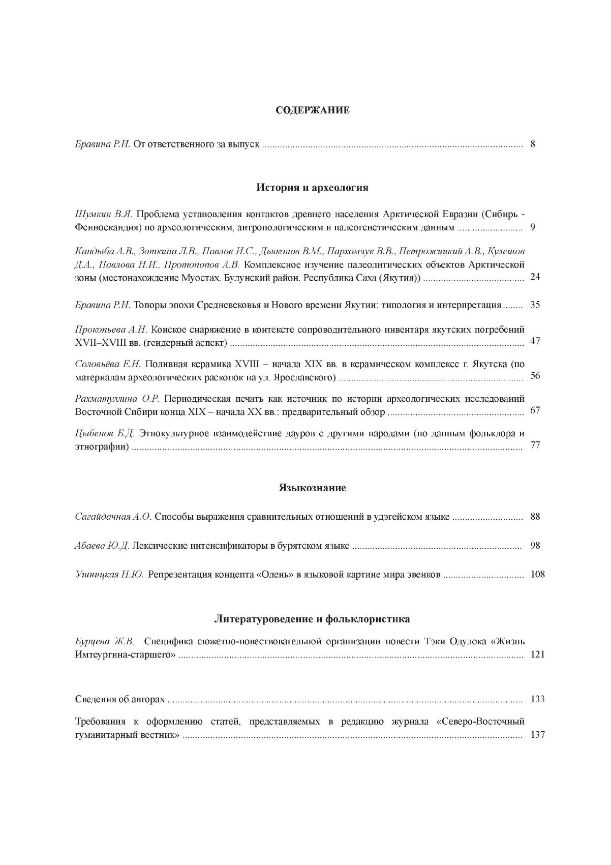 Северо-Восточный гуманитарный вестник : научный журнал / учредитель Федеральный исследовательский центр "Якутский научный центр Сибирского отделения Российской академии наук" ; редколлегия: Ефремов Н. Н. (главный редактор.) [и др.]. — Якутск : ФИЦ ЯНЦ СО РАН, 2010-. — Выходит 1 раз в квартал. — ISSN 2218-1644 (print)