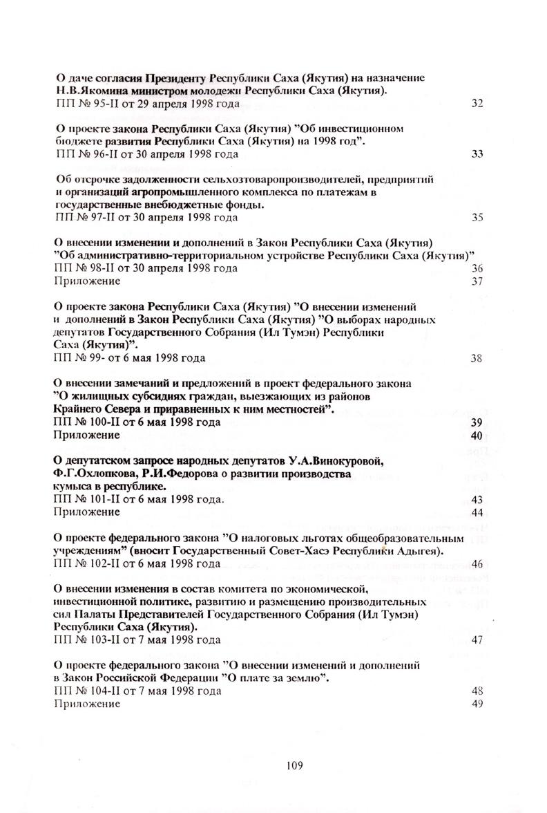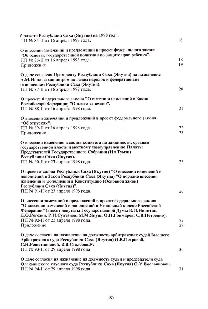 N 2, т. 2 (апрель-июнь 1998 года), 1998, №2 (т. 2 (апрель-июнь 1998 года)) - 2. Сборник постановлений, принятых Палатой представителей Государственного Собрания (Ил Тумэн) Республики Саха (Якутия) второго созыва