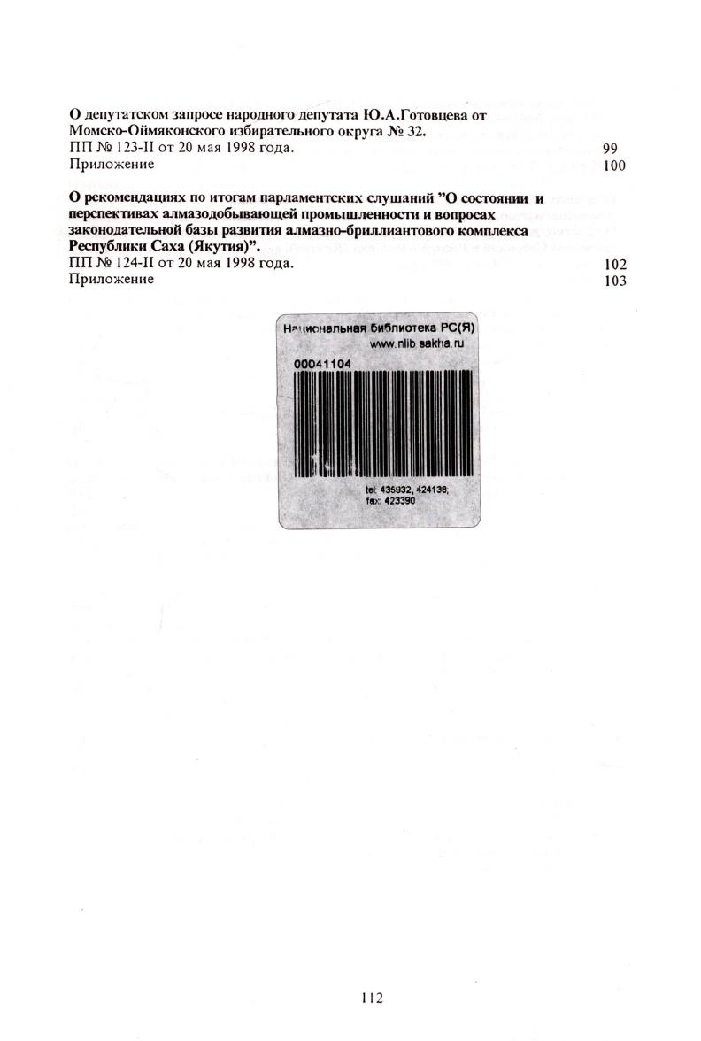 - 1. Сборник постановлений, принятых Палатой представителей Государственного Собрания (Ил Тумэн) Республики Саха (Якутия) второго созыва