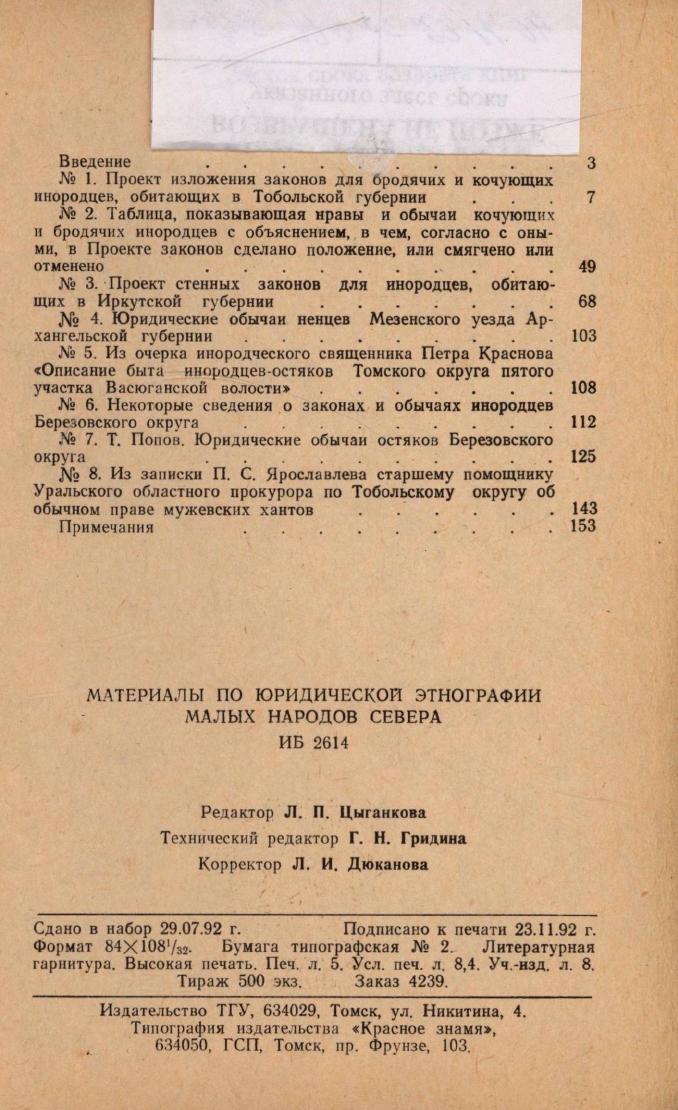 Материалы по юридической этнографии малых народов севера / Томский инженерно-строительный институт. - Томск : Издательство Томского университета, 1993. - 160 с.