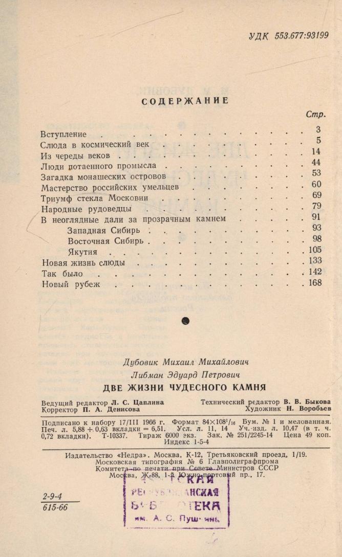 Две жизни чудесного камня : из истории слюдяного промысла в России / М. М. Дубовик, Э. П. Либман. - Москва : Недра, 1966. - 188 с., [10] л. ил.