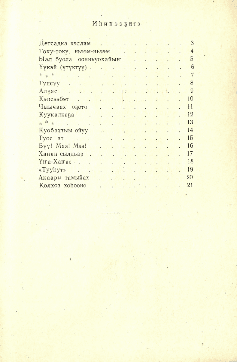 Бу хомуурунньукка оскуолаҕа киирэ илик саастаах оҕолорго анаммыт хоһооннор киллэрилиниллэр