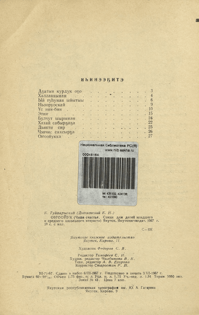 кинигэ изд-вота, 1967. - 26, [2] с.