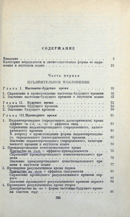 В книге на большом фактическом материале современного якутского языка дано научное описание имеющихся в языке десяти форм наклонения глагола, показаны их образование, временные формы, значение и употребление, проводится сравнение с аналогичным материалом родственных тюркских языков. Теоретические положения, выводы иллюстрированы удачно подобранными примерами