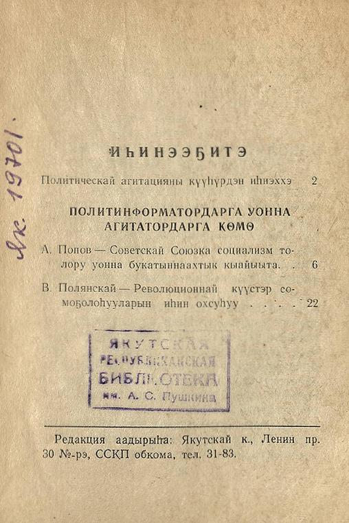 Агитатор блокнота / ССКП Саха уобаластааҕы комитетын пропагандаҕа уонна агитацияҕа отдела - Якутскай : ССКП обкома, 1945.