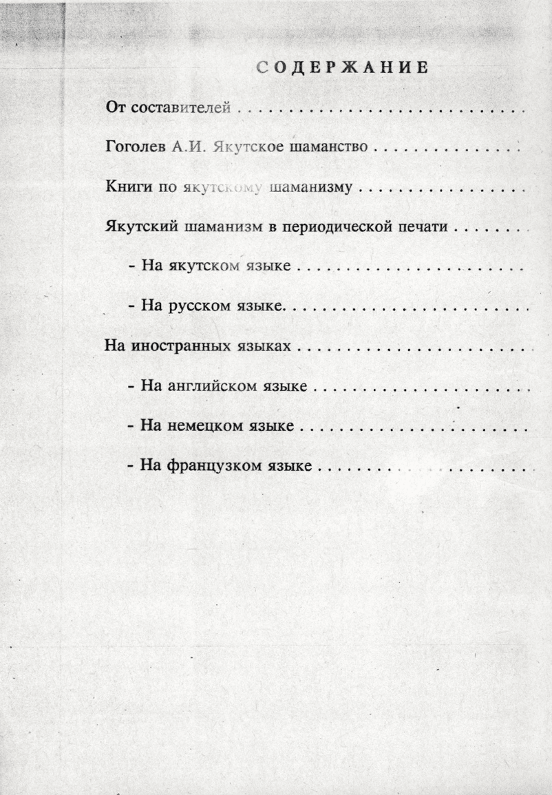 Библиографический список литературы "Якутский шаманизм" составлен навстречу Международной конференции по проблемам шаманизма в г. Якутске и охватывает литературу, вышедшую с XVIII века. С наибольшей полнотой отражена литература из фондов Национальной библиотеки Республики Саха (Якутия)