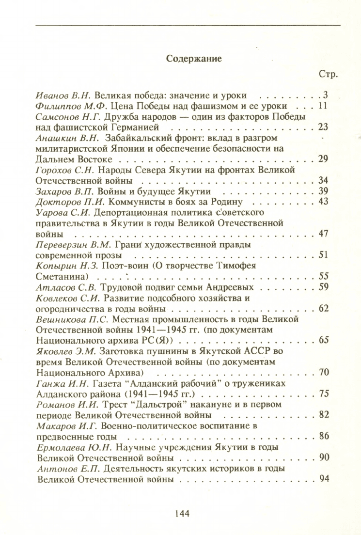 Сборник содержит доклады и сообщения, прозвучавшие на юбилейной научно-практической конференции, посвященной 50-летию Великой Победы. Материалы сборника освещают участие якутян в героических боях за Отечество: вклад тружеников промышленности, сельского хозяйства, науки и культуры республики в дело Победы; раскрывают новые неизвестные факты депортационной политике и изменения в социально-демографическом состоянии республики в годы войны, в него также вошли выступления и воспоминания ветеранов