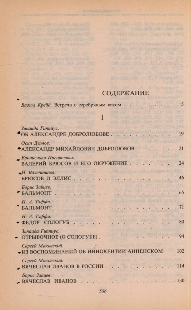Атмосфера ренессансного русского серебряного века (конец XIX — начало XX столетия), отмеченная необыкновенным взлетом духовности й культуры, воссоздана в предлагаемой читателю книге. Авторы воспоминаний о Бальмонте, Сологубе. Блоке. Андрее Белом, Гумилеве. Волошине, многих других блистательных людях отечественного ренессанса — сами творцы или очевидцы этой эпохи вынуждены были покинуть родину после революции. Большая часть мемуаров, собранных Вадимом Крейдом, профессором славистики Айовского университета (США), публикуется в России впервые
