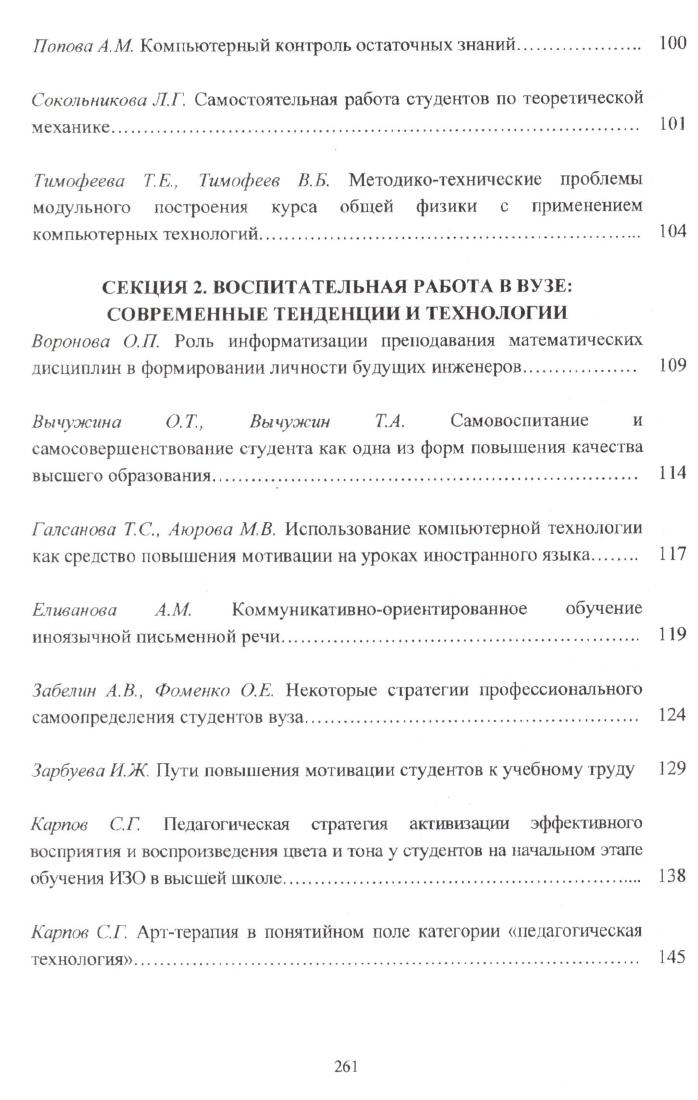Сборник охватывает широкий круг проблем в области модернизации всех уровней образования, начиная с дошкольного до высшего, методологии и организации образовательного процесса, педагогического мастерства, профессионального саморазвития студентов