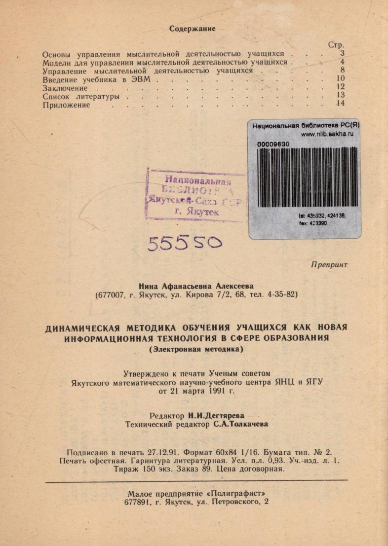 Якутск, 1991. - 15, [1] с.