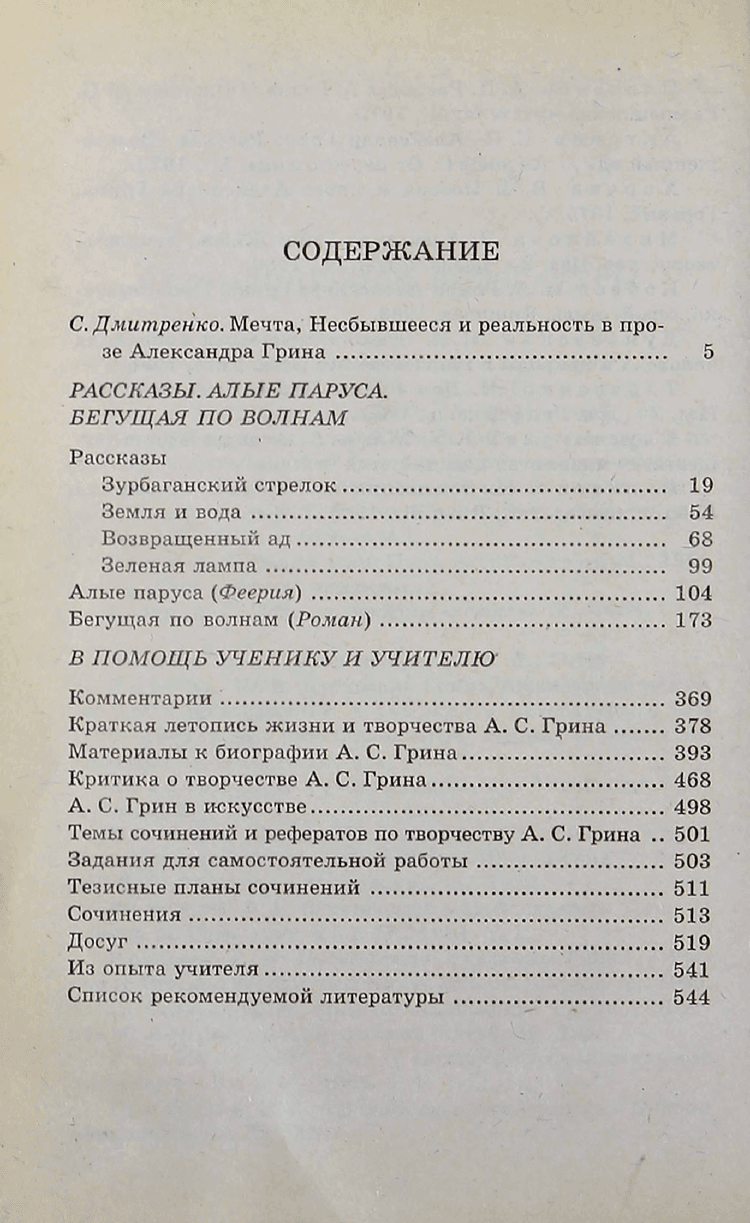 Настоящее издание кроме произведений А. С. Грина, изучаемых по школьной программе, содержит много дополнительных материалов. В помощь учащимся и учителям публикуются комментарии к текстам, летопись жизни и творчества писателя, высказывания критиков о нем, воспоминания современников, темы сочинений и развернутые планы некоторых из них, задания для самостоятельной работы и т.д., а также материалы, которые в равной мере можно использовать как для проверки знаний, так и на досуге, во время тематических школьных вечеров.