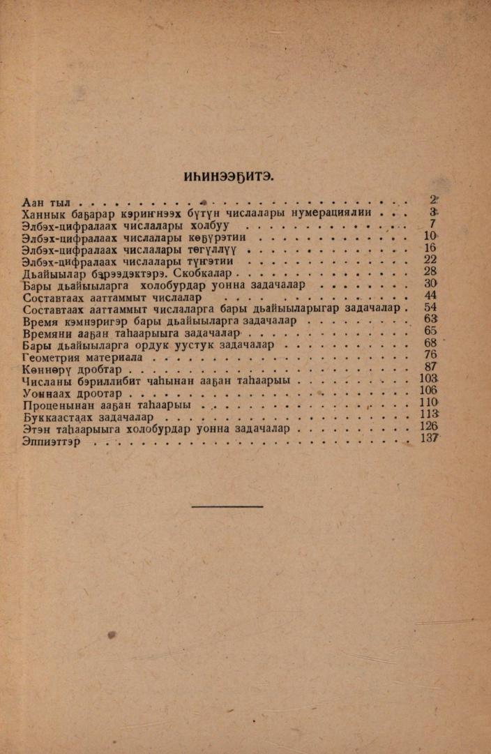 Арифметика задачаларын уонна эрчиллиилэрин хомуура : бастааҥҥы школа маҥнайгы кылааһыгар : [4 чаастаах] / Н. С. Попова. - иккис таһаарыы. - Москва : РСФСР ҮНК государственнай үөрэх-педагогическэй издательствэтэ, 1940. - . 4 чааһа. - Москва : Учпедгиз, 1940. - 144 с.