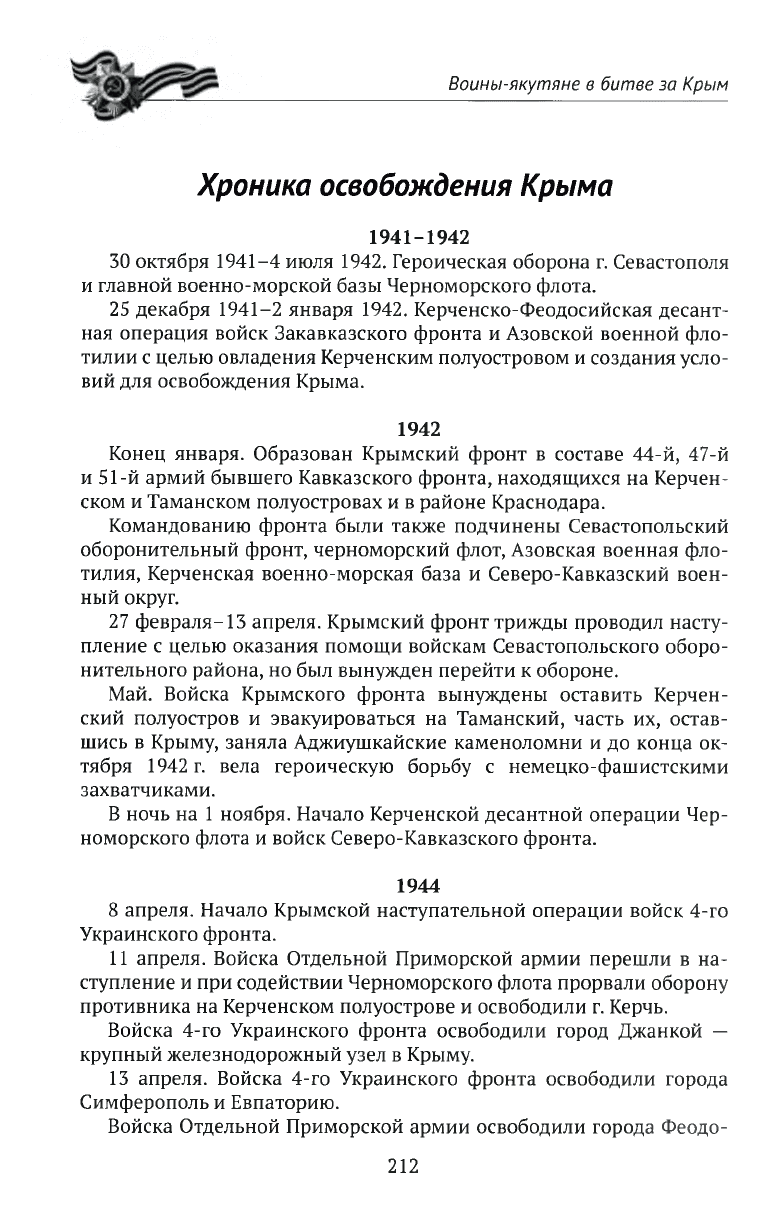 Воины-якутяне в битве за Крым, 8 апреля-12 мая 1944 г. / ГКУ РС(Я) "Нац. архив Респ. Саха (Якутия)"[авт.-сост. А. А. Калашников ; ред. С. И. Эверстова]. - Якутск : РИО медиа-холдинга, 2016. - 214, [1] с.