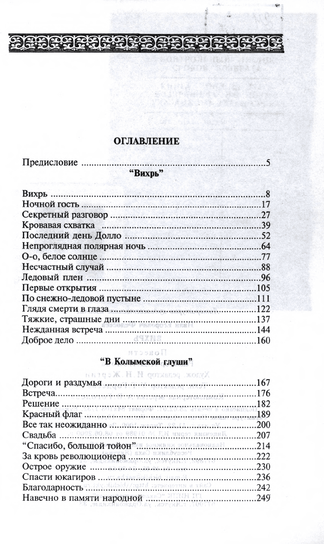 В сборник известного прозаика И. Федосеева вошли исторические повести "Вихрь" и "В Колымской глуши". В повести "Вихрь", удостоенной Государственной премии РС(Я) им. П. А. Ойунского и Всероссийской литературной премии им. Н. М. Карамзина, ведется рассказ об Американской арктической экспедиции, в которой участвовали представители разных народов мира. Дружба народов и взаимовыручка друг друга в трудных условиях - основной мотив повести. Повесть "В Колымской глуши", также удостоенной Всероссийской литературной премии Н. М. Карамзина, посвящена героической деятельности революционера, политссыльного, общественного деятеля, врача-гуманиста С. И. Мицкевича на Колыме