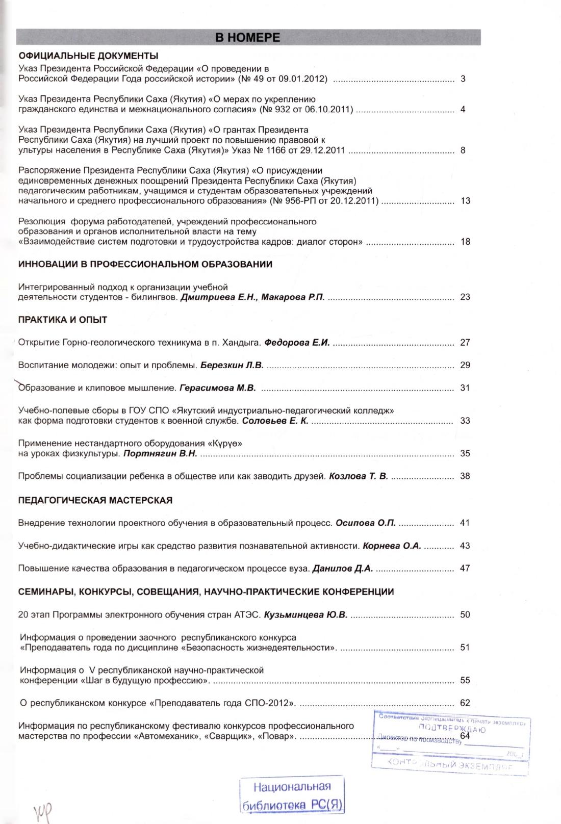 - Периодические издания Якутии (конец XIX – XXI вв.) > Журналы > Профессиональное образование Якутии > 2012,