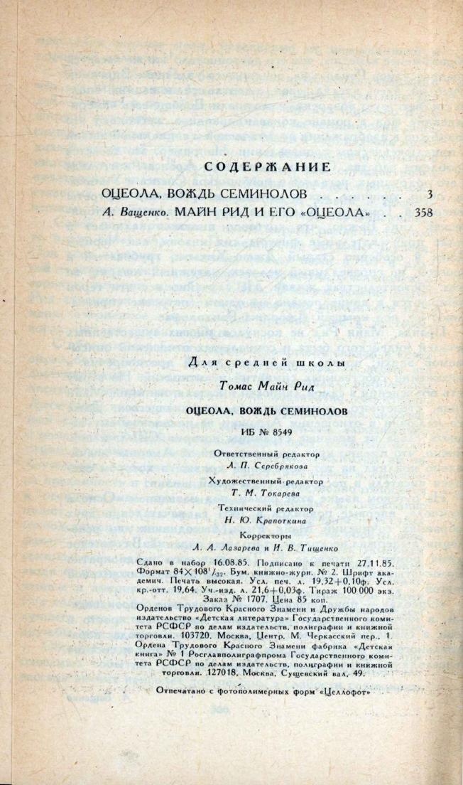 Оцеола, вождь семинолов : повесть о Стране Цветов / Майн Рид ; [перевод с английского Б. Томашевского ; рисунки И. Кускова]. - Москва : Детская литература, 1986. - 366, [2] с.
