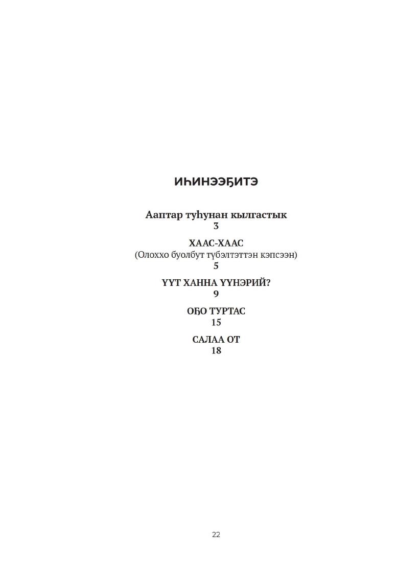 Хаас-хаас : [оскуолаҕа киириэн иннинээҕи саастаах оҕолорго кэпсээннэр] / Филипп Филиппов ; хомуйан оҥордо С. В. Хабарова ; ойуулары оҥордо И. Д. Корякин. - Дьокуускай : СӨ НБ БК, 2025. - 1 файл (22 с. ).